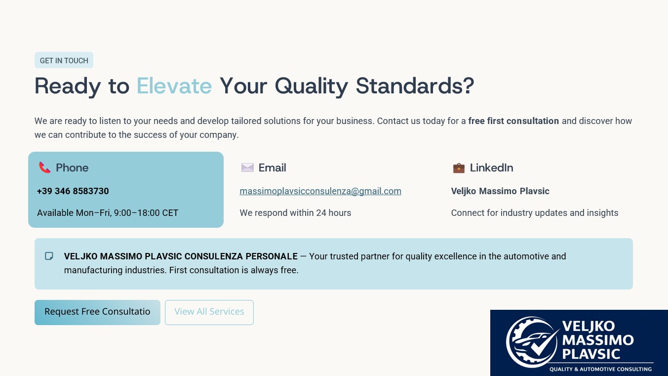 Veljko Massimo Plavsic Quality & Automotive Consulting