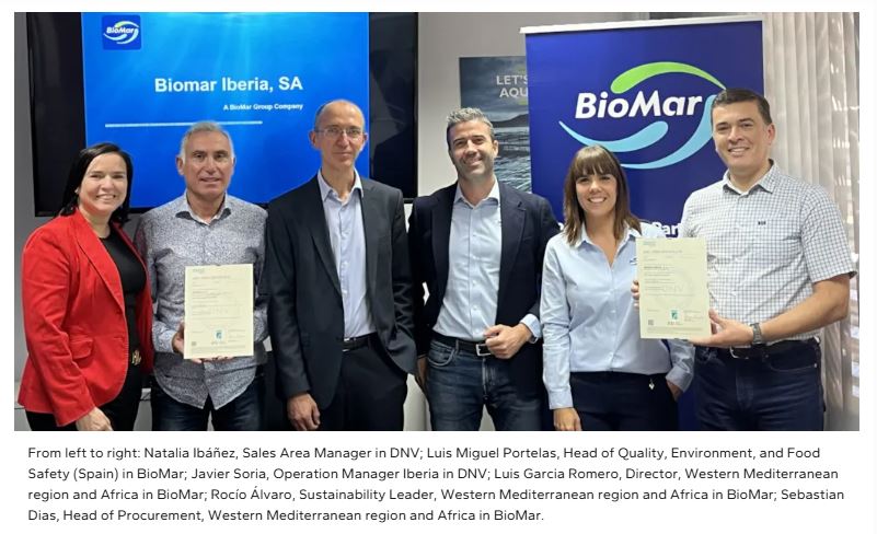 BioMar, a Denmark-based global producer of aquafeed, has been certified by DNV under the Aquaculture Stewardship Council (ASC) Feed Standard for its facilities in Nersac, France, and Dueñas, Spain.