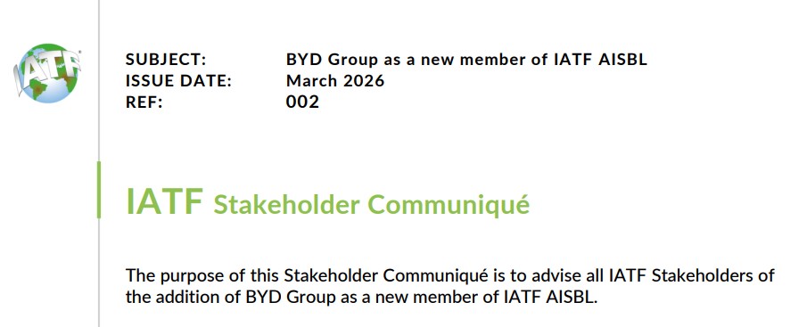 BYD Joins IATF As First NEV-Only Automaker And Second Asian Member
