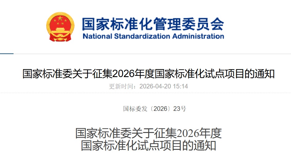 The Standardization Administration of China (SAC) has opened applications for its 2026 national standardization pilot program,