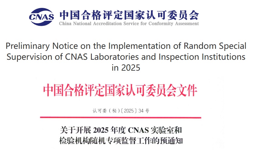 The China National Accreditation Service for Conformity Assessment (CNAS) will soon begin a round of random supervision for accredited laboratories and inspection bodies in 2025.