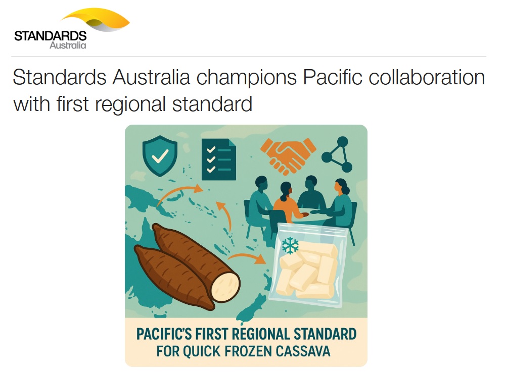 Standards Australia (SA) is helping Pacific nations move toward their first unified regional standard, with a draft now open for public comment on Quick Frozen Cassava.