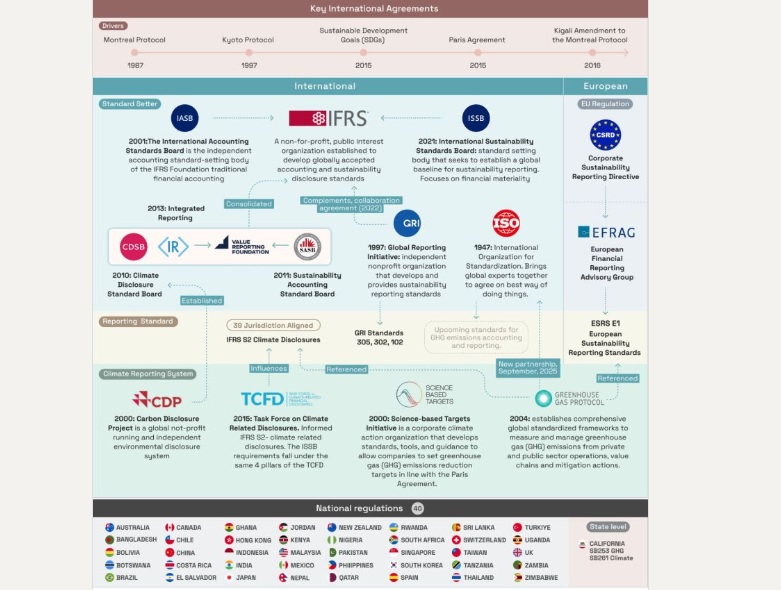 Datamaran, a provider of ESG risk and regulatory intelligence, released an infographic and accompanying report providing a global overview of climate change reporting standards and frameworks.