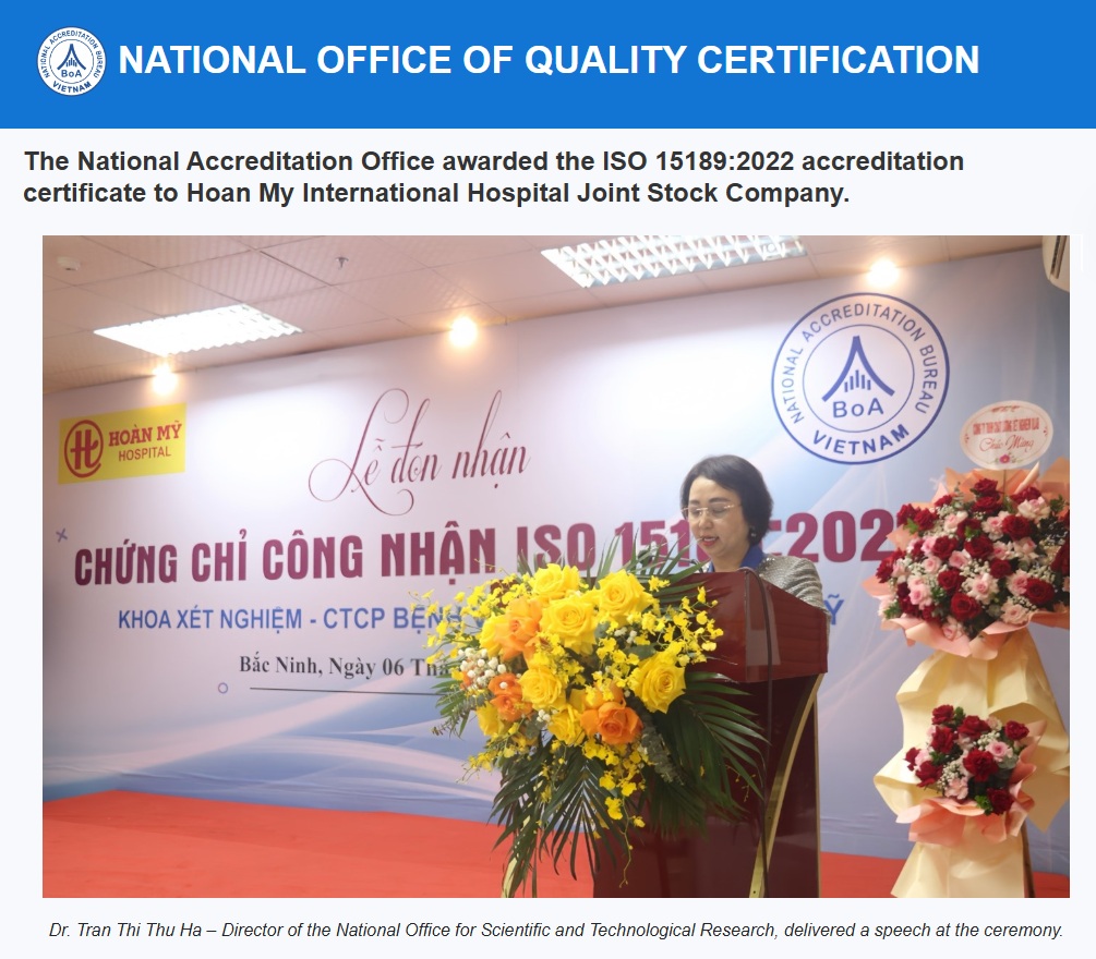 The medical laboratory of Hoan My International Hospital has received ISO 15189:2022 accreditation from the National Accreditation Bureau (BoA),