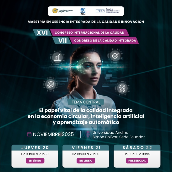 The Ecuadorian Standardization Service (INEN) and the Andean University Simón Bolívar (UASB) are inviting participants to the XVI International Quality Congress and the VII Integrated Quality Congress,