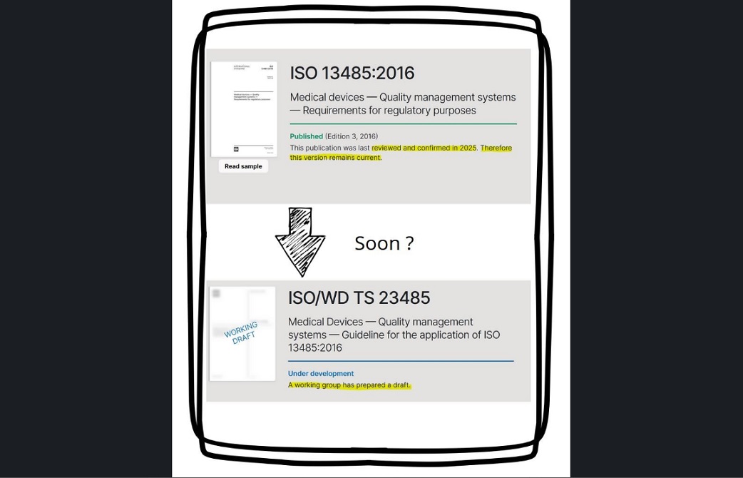 A new guide on how to apply ISO 13485 is moving through development shortly after the standard was reconfirmed in its 2016 version (no revision will be done), despite remaining unaligned with the Annex SL structure.