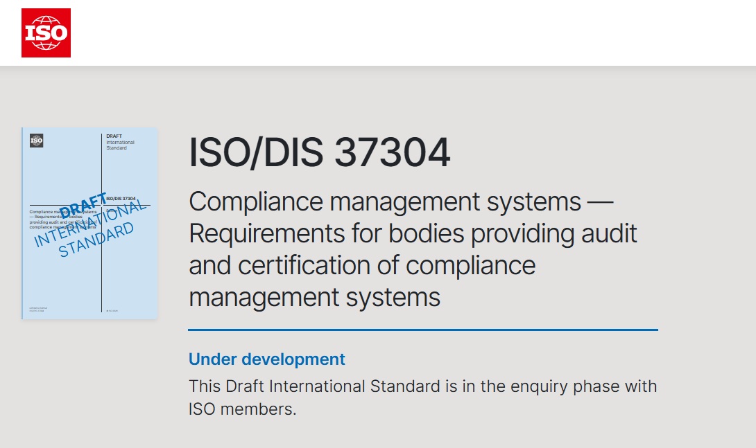 The International Organization for Standardization (ISO) has advanced ISO 37304 to the final draft international standard (FDIS) stage.