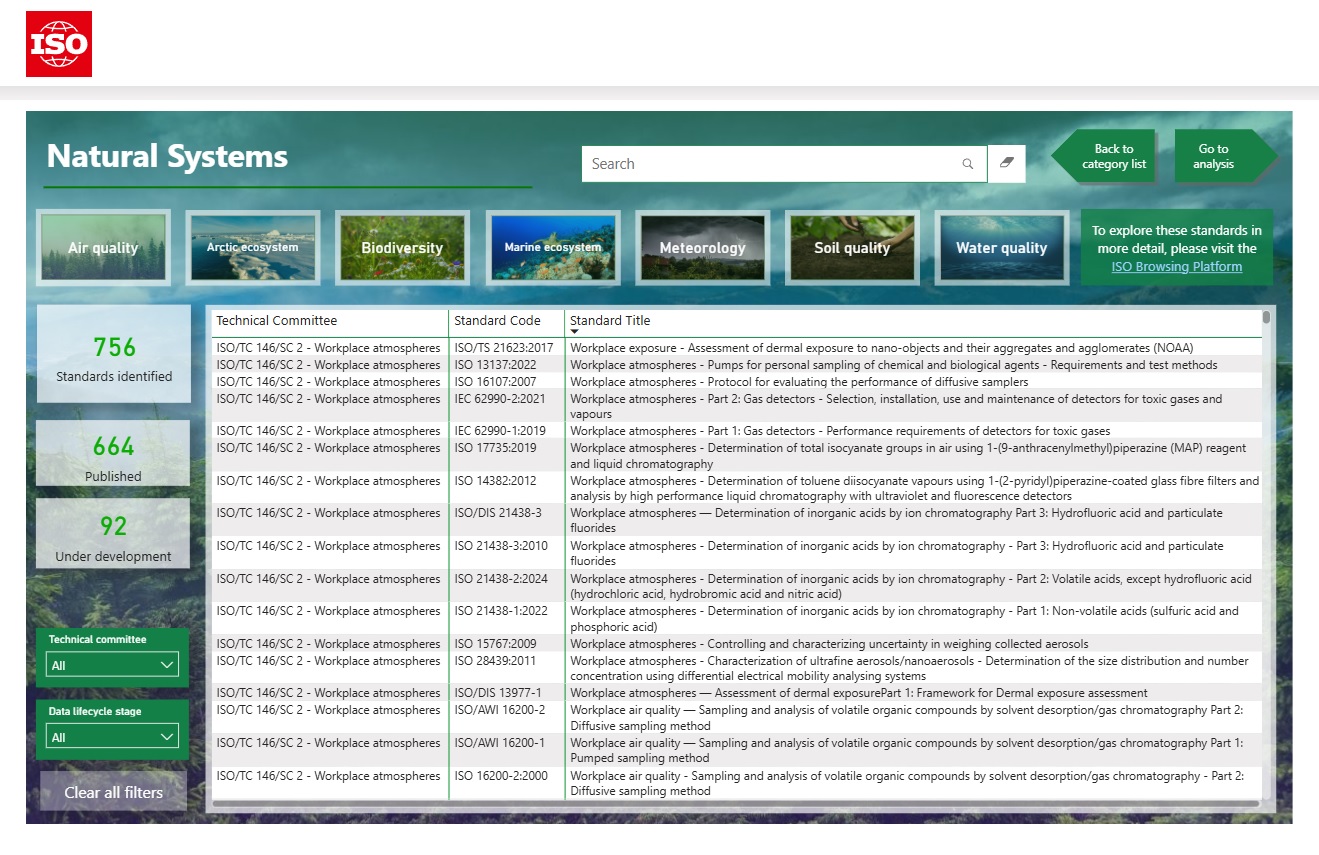 The International Organization for Standardization (ISO) has launched a new interactive dashboard that brings together more than 1,100 International Standards linked to environmental data.