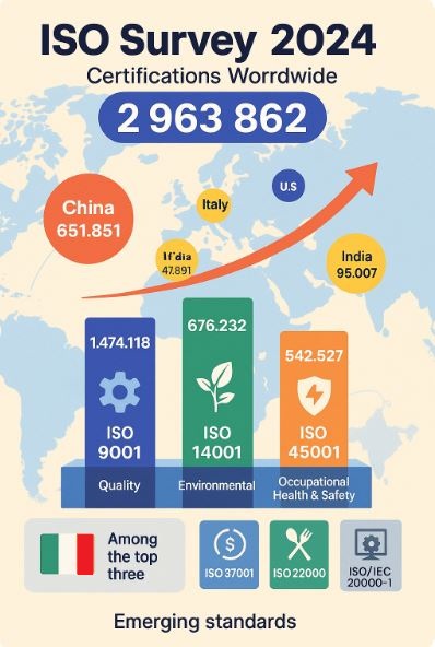 ISO Survey Finds Italy Among Global Leaders in Key Management System Certifications