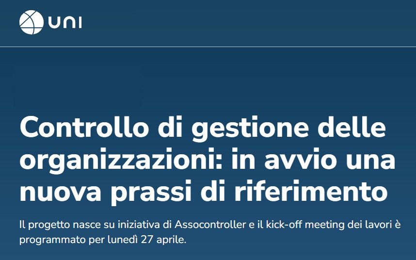 The Italian Organization for Standardization (UNI) is starting work on a new reference practice for management control systems, aiming to provide a structured way to monitor economic and operational performance.