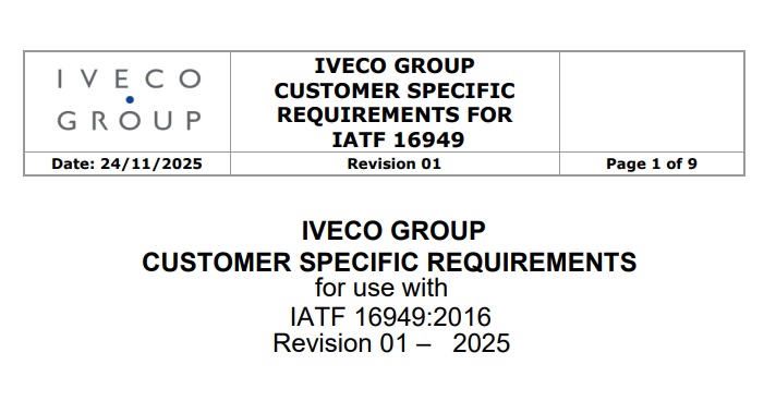 IVECO Group has updated its Customer Specific Requirements (CSRs) for organizations certified to IATF 16949, setting new expectations for how suppliers manage quality, testing, sustainability, and supply disruptions.