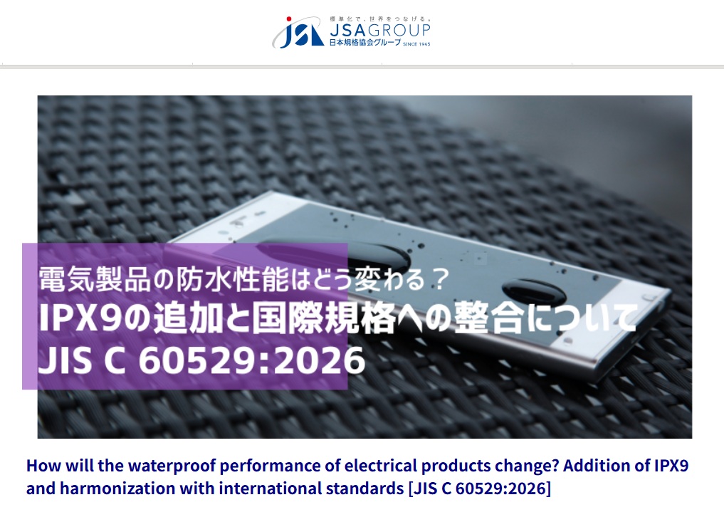 Japan has revised its national standard for the IP Code, the rating system that shows how well electrical products are protected against contact, dust, and water,