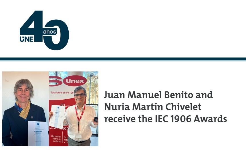 Two Spanish experts, Juan Manuel Benito and Nuria Martín Chivelet, have received the IEC 1906 Awards for 2025 in recognition of their contributions to international electrotechnical standardization under the International Electrotechnical Commission (IEC).