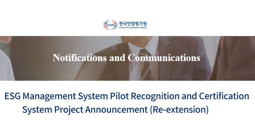 The Korea Accreditation Board (KAB) has extended its pilot accreditation scheme for environmental, social and governance (ESG) management systems, continuing the pilot program until October 31, 2026.