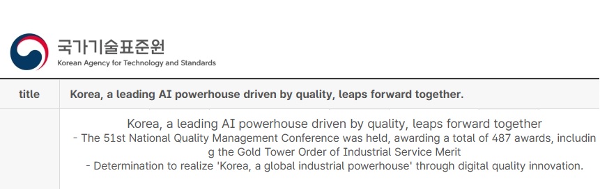 The Korea Agency for Technology and Standards (KATS) and the Korean Standards Association (KSA) held the 51st National Quality Management Conference at COEX in Seoul on November 19,