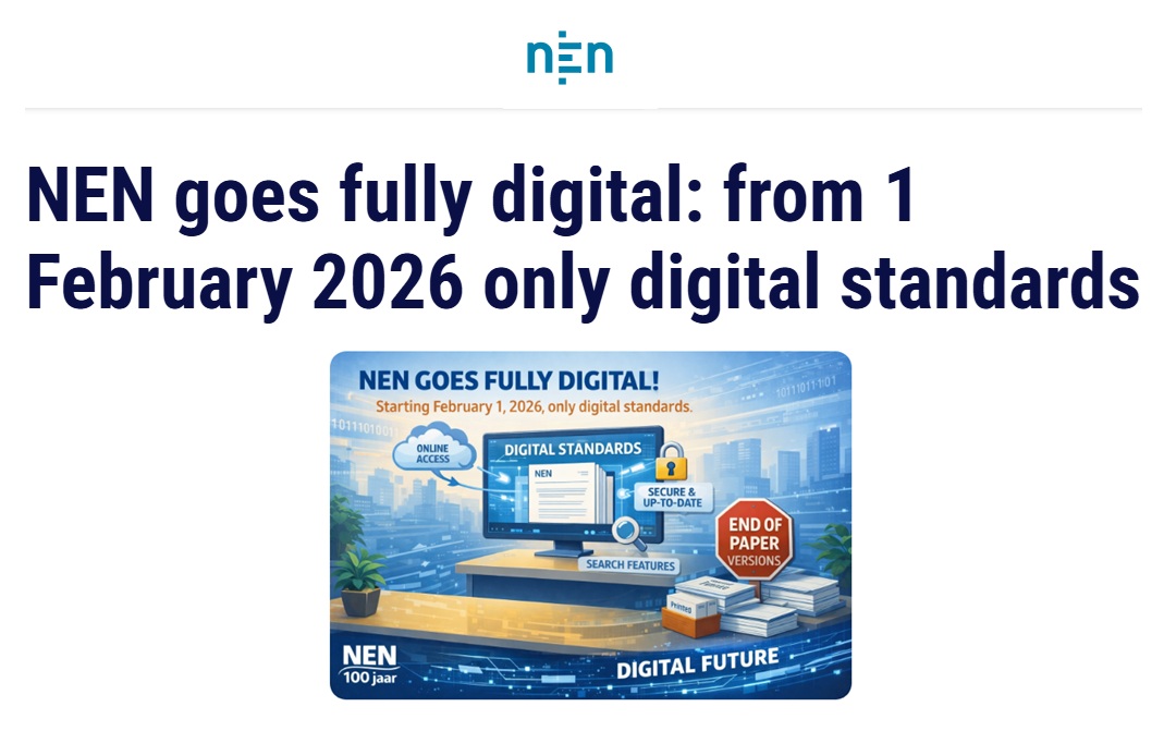 From February 1, 2026, NEN, the Netherlands’ national standards body, will supply its standards only in digital form, ending the sale of printed standards.