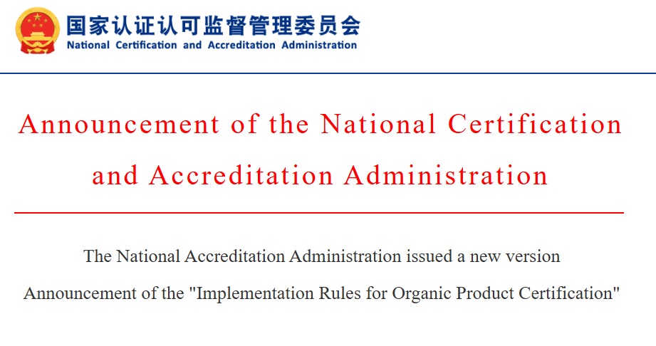 The China National Certification and Accreditation Administration (CNCA) has issued a revised version of the Implementation Rules for Organic Product Certification,