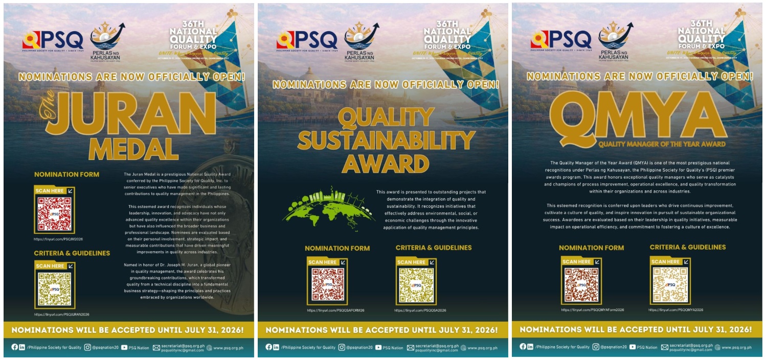 Philippine Society for Quality Opens Nominations for Three Awards