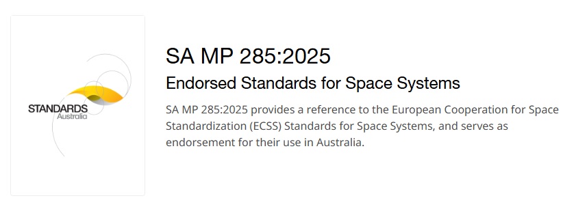 Standards Australia has released SA MP 285:2025, a new Miscellaneous Publication that endorses the suite of standards, handbooks, and technical memoranda developed by the European Cooperation for Space Standardization (ECSS).