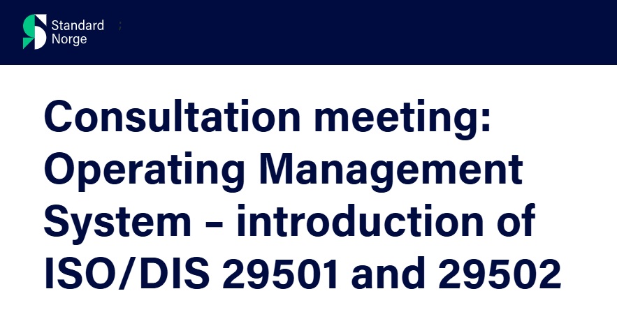 Standard Norway (SN) will hold an open consultation meeting on March 4 to present and gather feedback on two draft international standards that define requirements and conformity assessment rules for operating management systems.