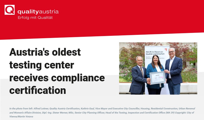 The City of Vienna’s Department MA 39, Austria’s oldest testing, inspection, and certification body, has been certified for its compliance management system under ISO 37301.